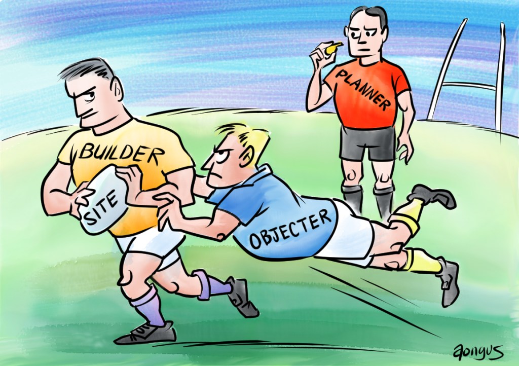 | Most years it’s an embarrassment to talk about the Irish rugby team but this year I’m going around with a rather smug smile as we’re doing rather well. And I got to thinking about how like the planning system the game is. It can be very slow, everyone seems stuck in mud and nobody fully understands the rules which are models of bamboozlement. Take the scrum, where 20 stone masses of man meat go head to head with each other and grunt and groan as they try to win the ball…with their heels for God’s sake. Any of you who have been on either side of a difficult pre-app meeting will know the feeling only too well. Then there is the maul which always reminds me of public exhibitions where ‘angry residents’ (always angry) and ‘concerned environmentalists’ (always concerned) take on the ‘greedy developers’ (always greedy). There’s also the line out – I cannot help but be reminded of council meetings where the ruling party try to defend a local plan against the opposition. The poor old referee – and I always think of planning officers who know the near-incomprehensible rules. At least they do not have to suffer the same abuse as they get at soccer matches where they are berated as being onanists – sometimes in song. As with rugby the rules of planning are so complex that they confuse everyone so there is little choice but to abide by rule of the referee. Failing that we can always consult the virtual referee, Michael Gove. But the biggest similarity between rugby and planning is the kick to touch. Members may want a site visit, a deferment or more reports – as if they did not have enough in the telephone books they have been presented with and often not read. This tactic is increasingly used as we head towards elections. Our Irish team includes both southern and northern men who have played happily together since the game was invented. I tried to explain this anomaly to an Italian once – big mistake. Before I knew it I was back in 1690 explaining the Battle of the Boyne. Perhaps there are lessons for Mr Sunak as he tries to sort out the Northern Irish Protocol. I wish him luck. Anyway, put March 18 (ominously the day after Paddy’s Day when there is a lot of drinking) in your diary. We want to win the only match that matters…against England. Have a good weekend. Tom |