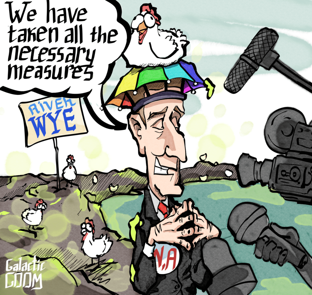 Emma Johnson of NE said: ‘Natural England will ensure that we, and our partners in the Wye Nutrient Management Board, make full use of the regulatory and voluntary measures at our disposal…to ensure a thriving natural world.’ Fine words. No action.